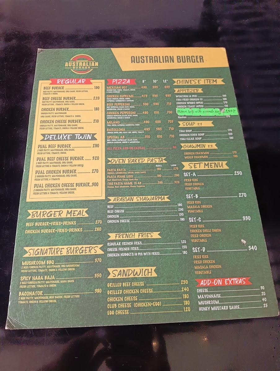 Nestled in the heart of Akhtar, Australian Burger is a hidden gem that promises an adventurous twist on the classic burger experience in Bangladesh. This quaint café stands out not just for its hearty burgers but also for the authentic flavors that transport your taste buds straight to Australia.